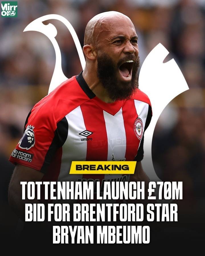 直播吧06月13日讯 镜报消息,热刺队布伦特福德前锋姆贝莫提出了一份新的报价,压过了曼联的价格,此前曼联一直是姆贝莫的热门下家。