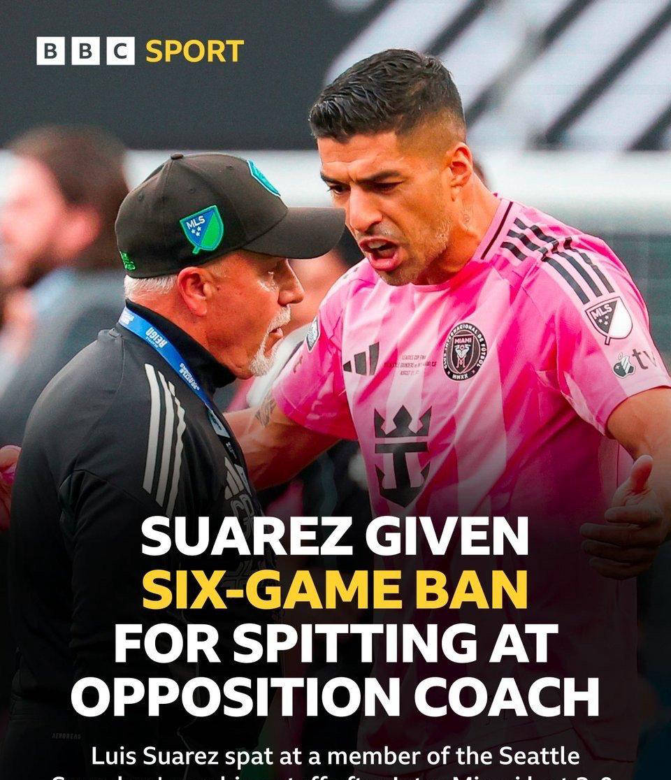 据北美联盟杯组委会官方透露的确切消息,迈阿密国际队内中锋苏亚雷斯因在周日联盟杯决赛后向西雅图海湾人队的工作人员吐口水,将被处以禁赛6场的严厉惩罚。原本组委会并未打算对苏亚雷斯采取行动,因双方在比赛结束后发生冲突,但后来根据视频证据和工作人员投诉,发现苏亚雷斯吐口水的不当行为引发了更严重的冲突,最终导致他被禁赛六场。